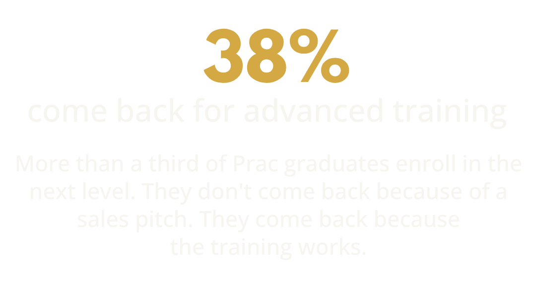 This is not a lecture. Not a seminar. Not someone yelling at you from a stage. You learn real skills. You practice them with other students. You leave certified and ready to use what you learned the next day.